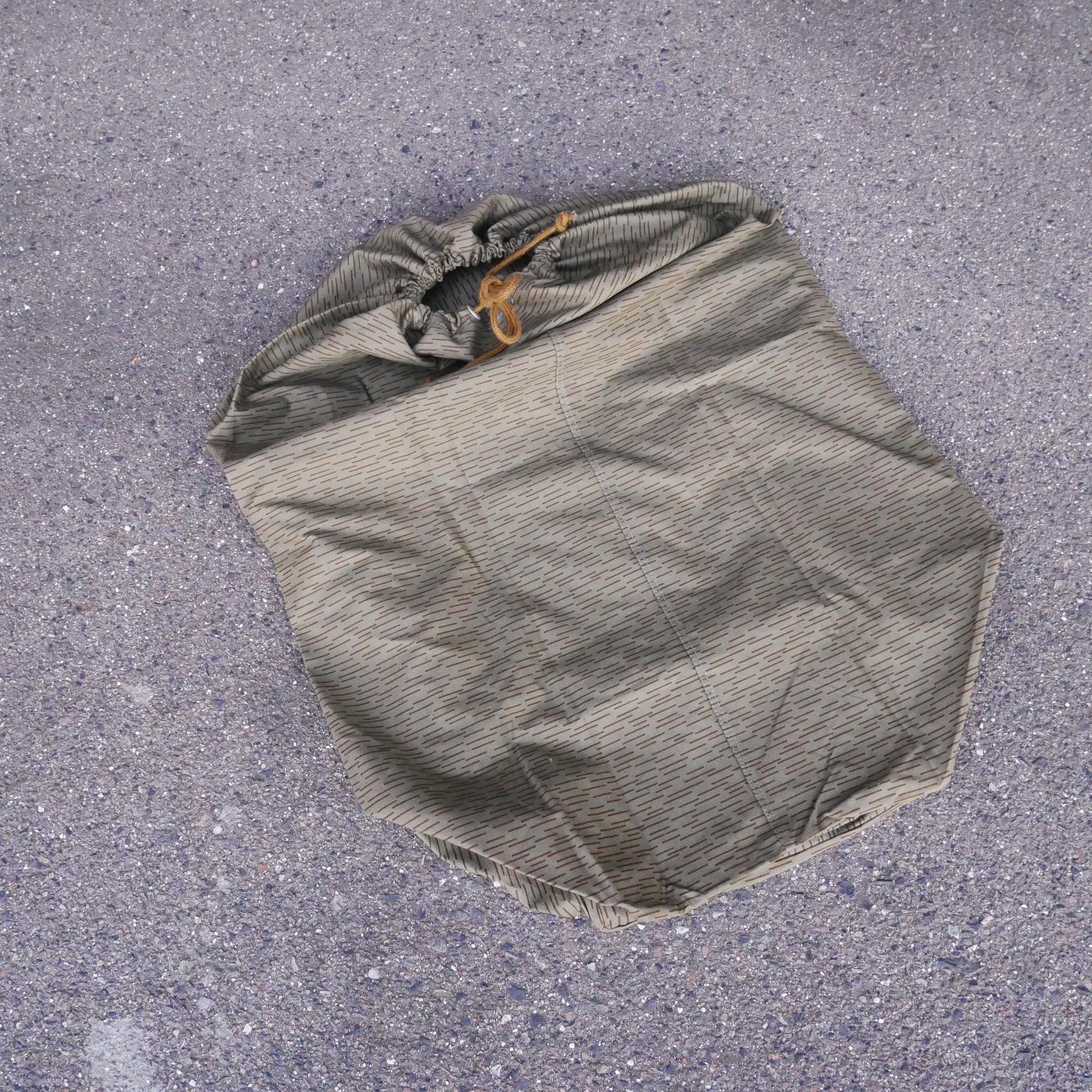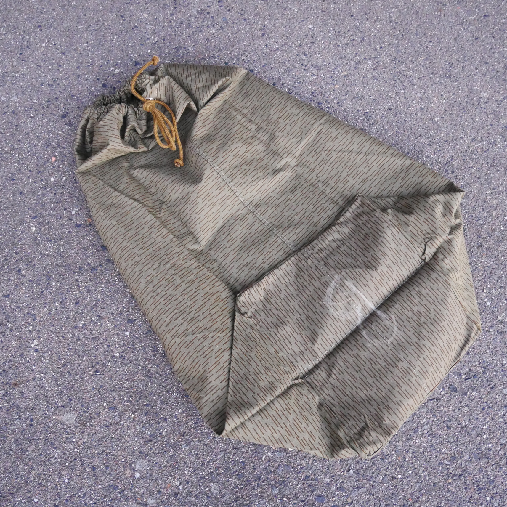 ドイツ軍の大容量ランドリーバッグ。軍幕と同じ生地のレインドロップカモ。上部な綿の生地でこれから育っていくアイテムです。