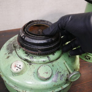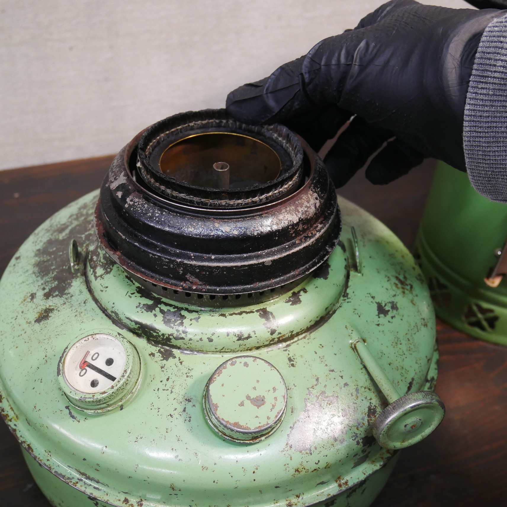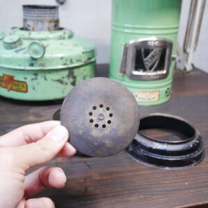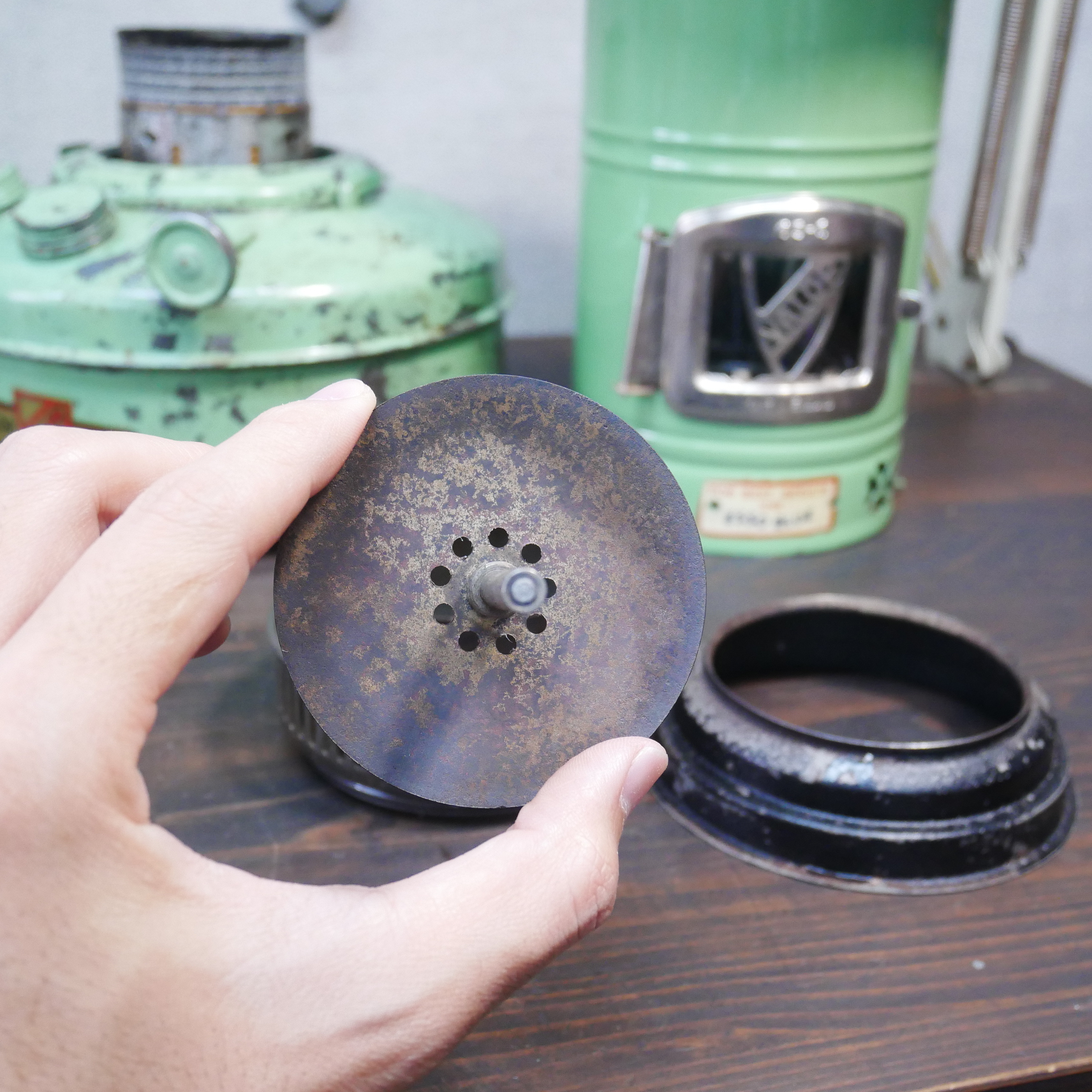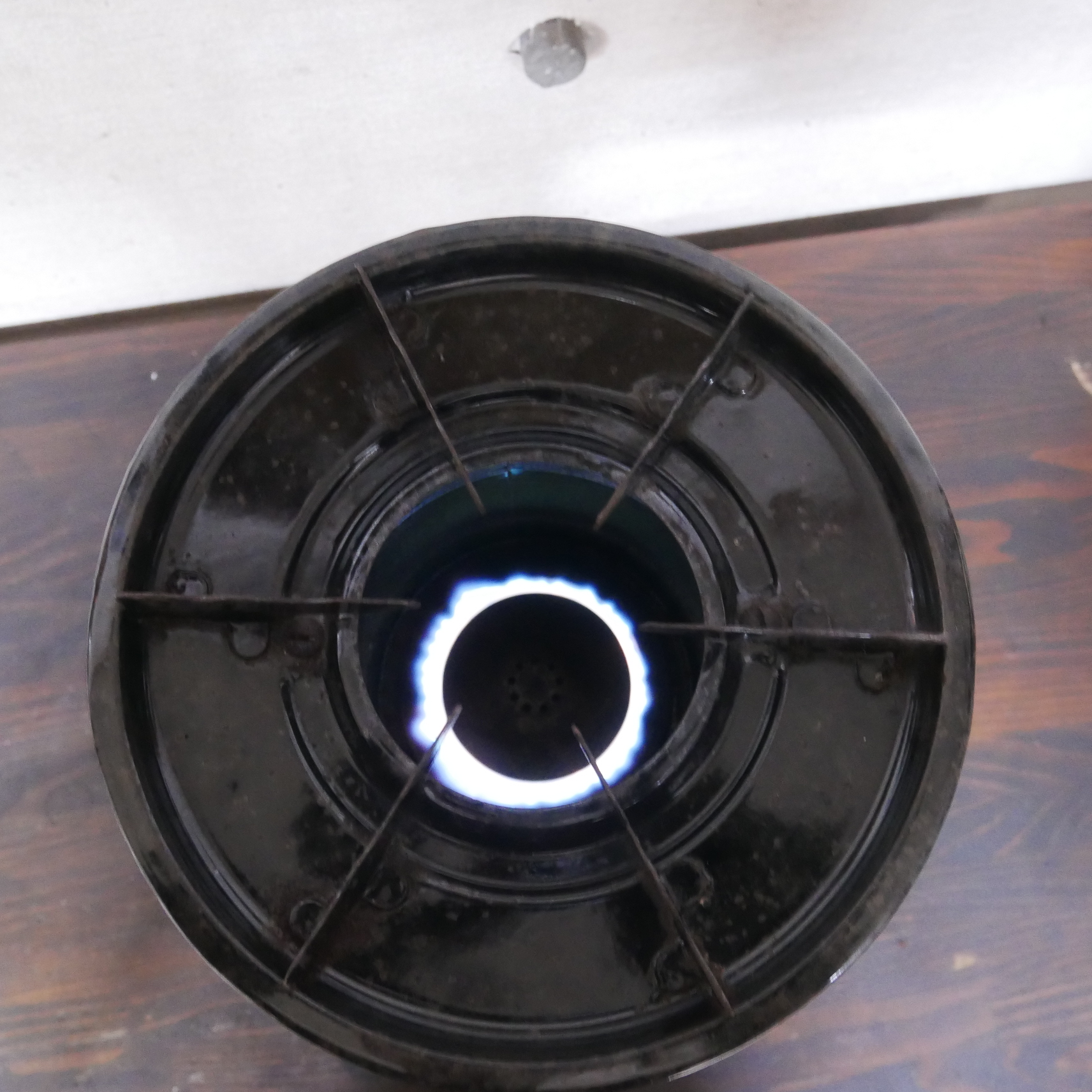 ガラス芯に交換しています。なので空だきしても大丈夫です。青火の調整も可能です。最後の写真2枚のように芯を外に広げて上げて調整すると青火になります。
