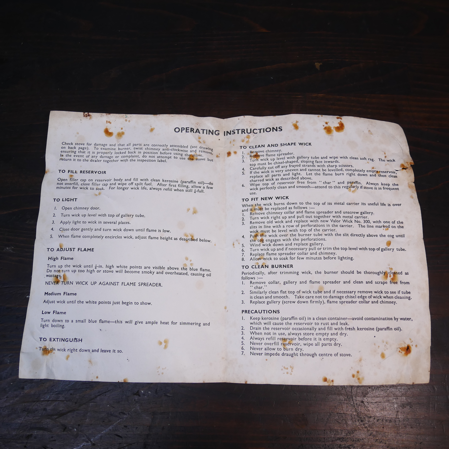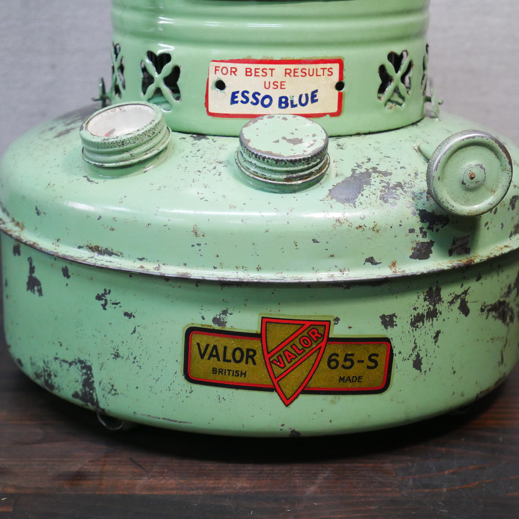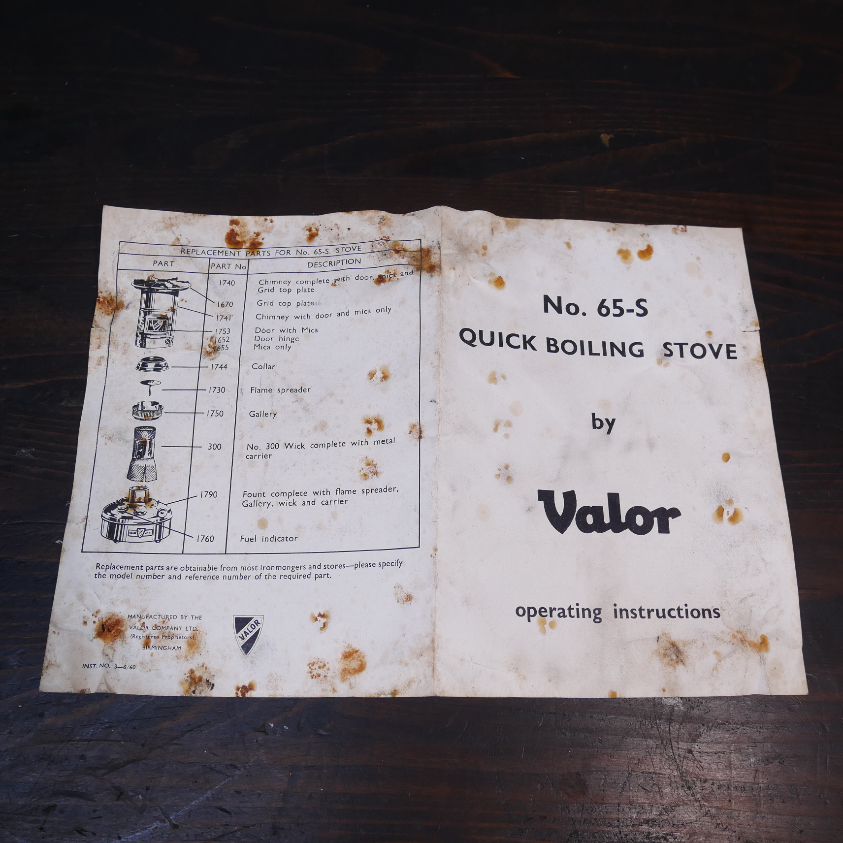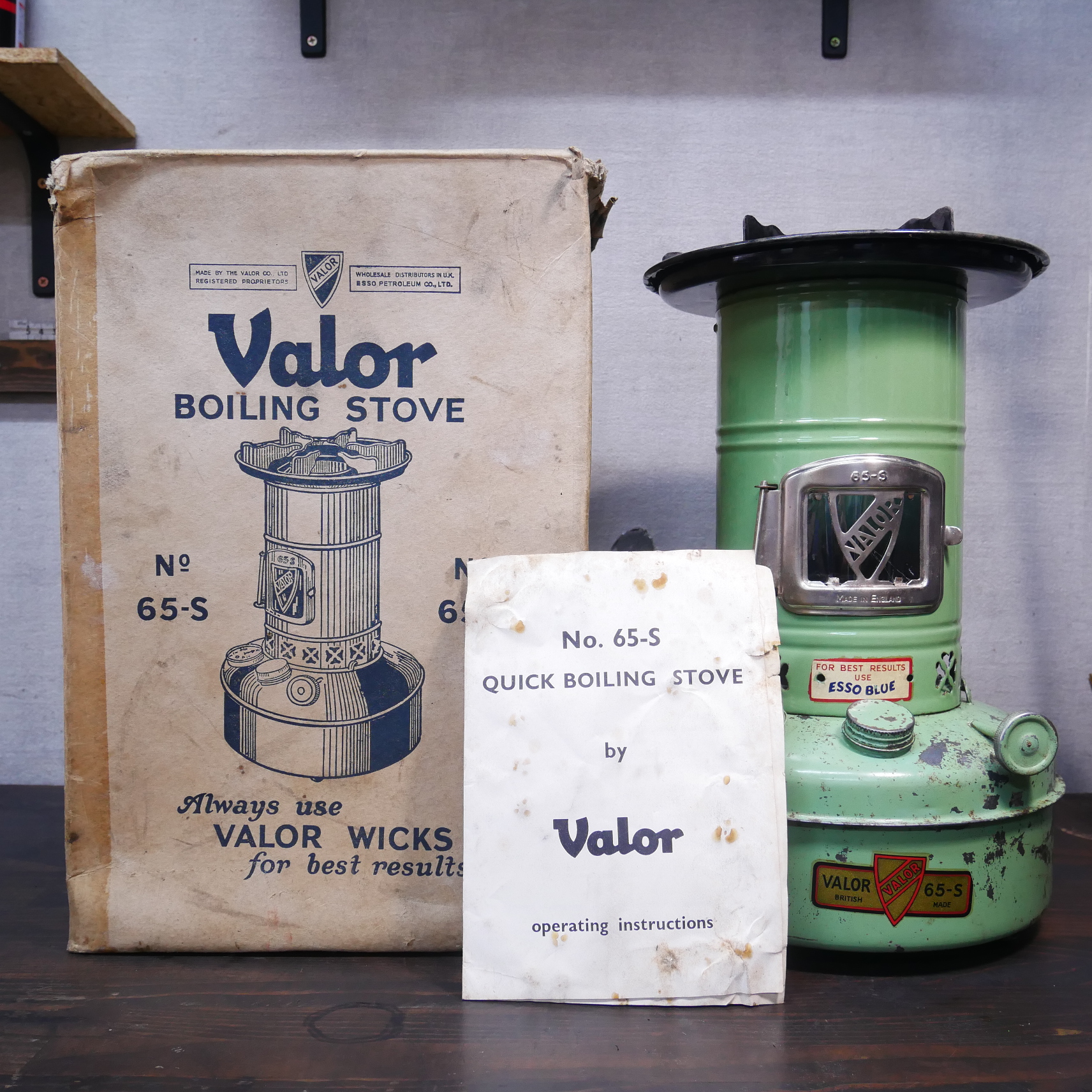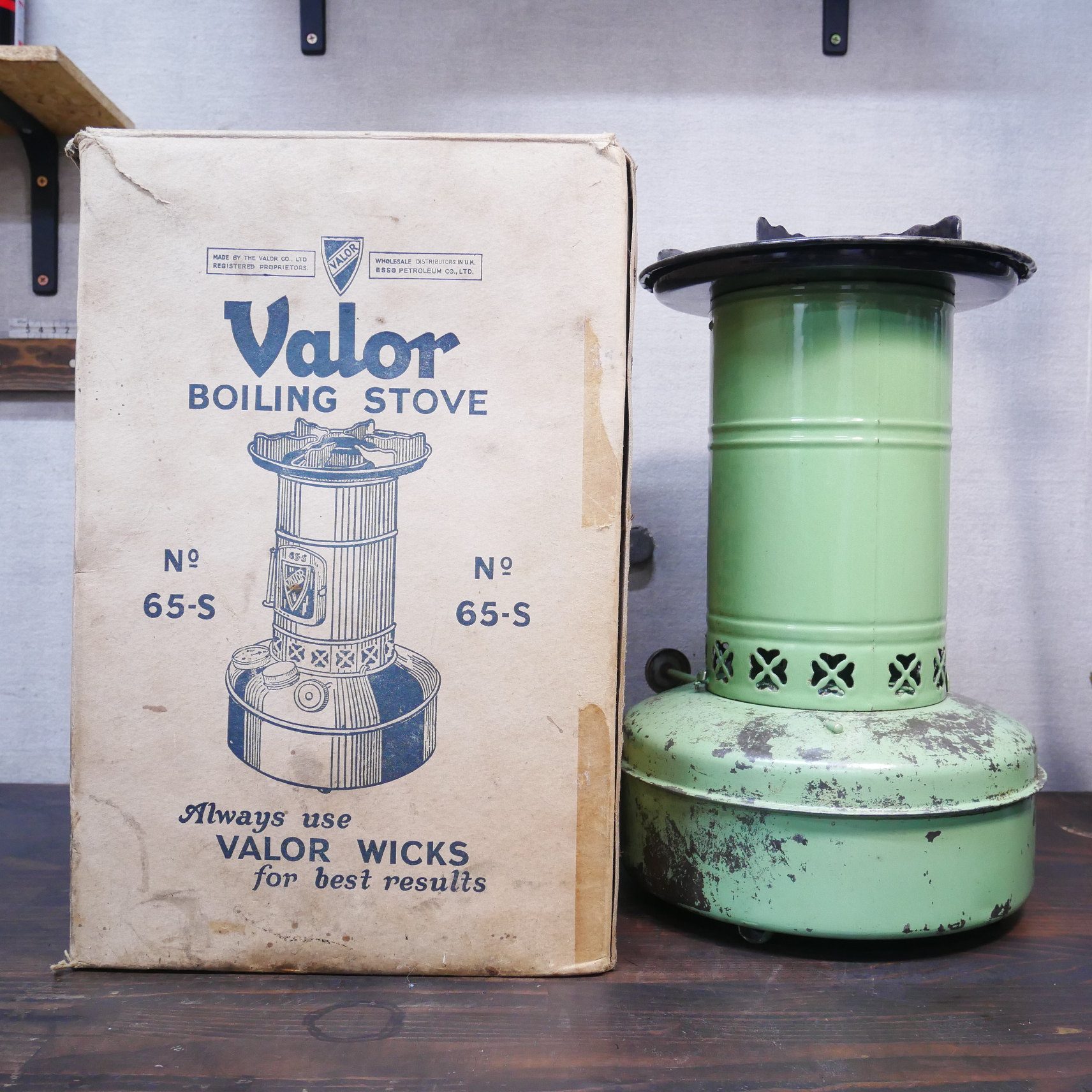 ビンテージストーブで有名なVALORのクッカーストーブ65ーSです。五徳がしっかりしており、火力調整も可能。当時は部屋を暖めるより、煮る等クッカーとしての用途の方が強かったようです。しかし、ソロ幕でしたら十分な火力があります。上に向けて熱が抜けるタイプです。周りは暖かくなりません。サブのストーブ、クッカー、雰囲気を上げるギアとして抜群の見た目です。