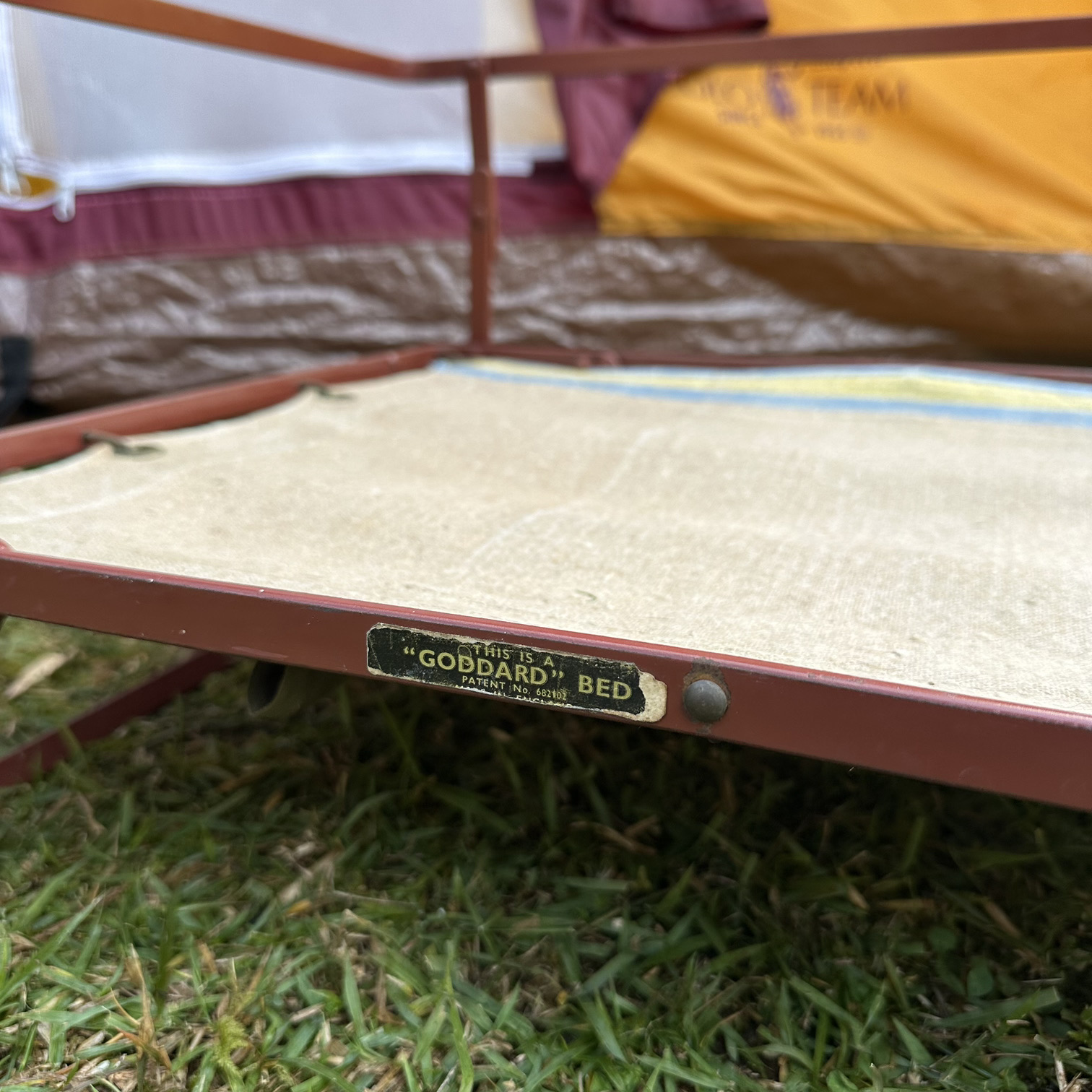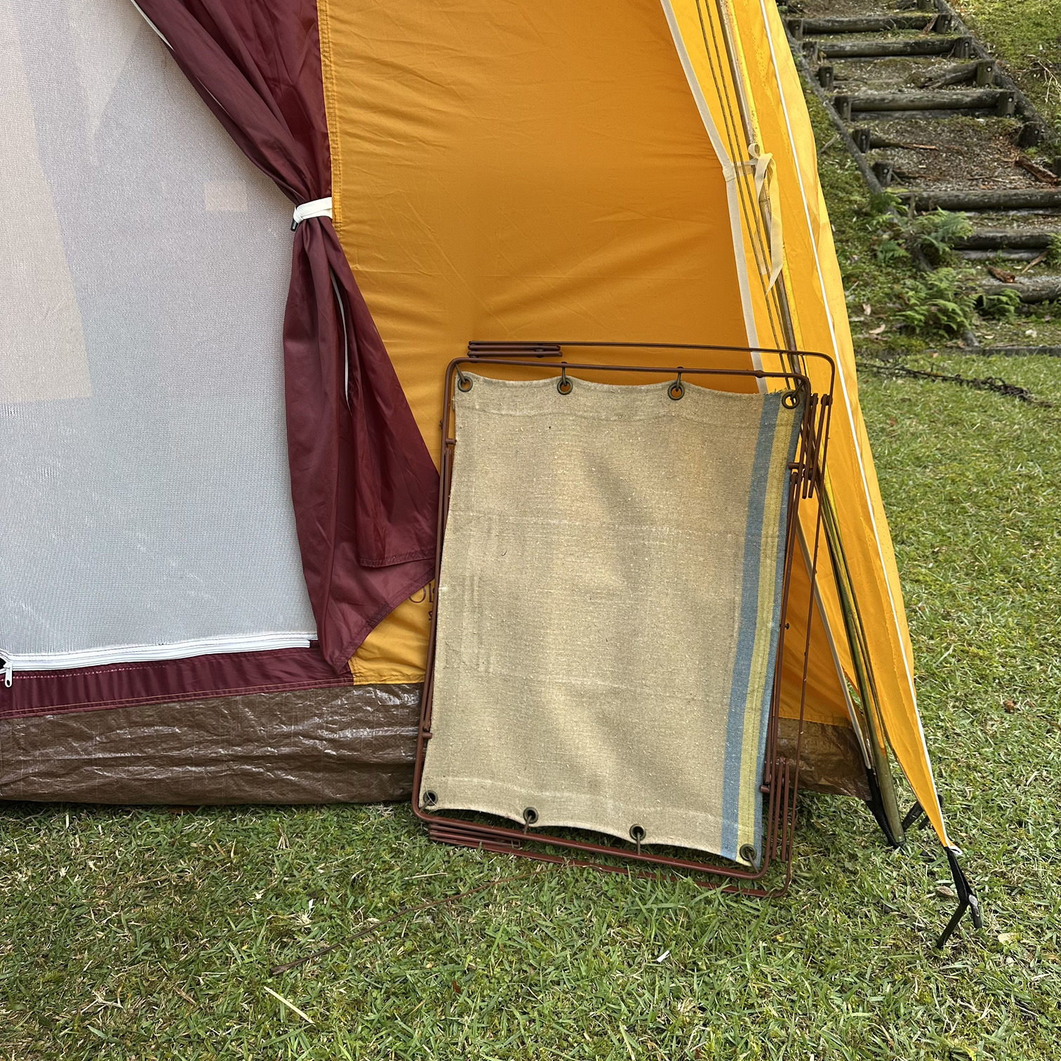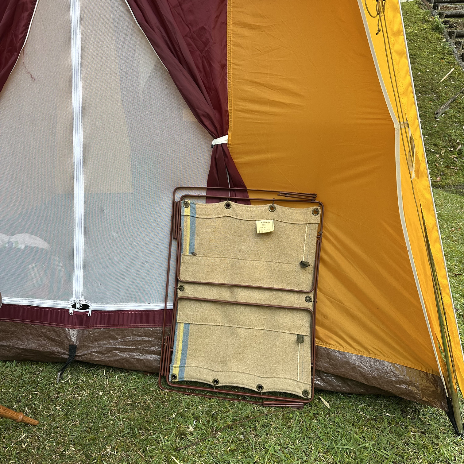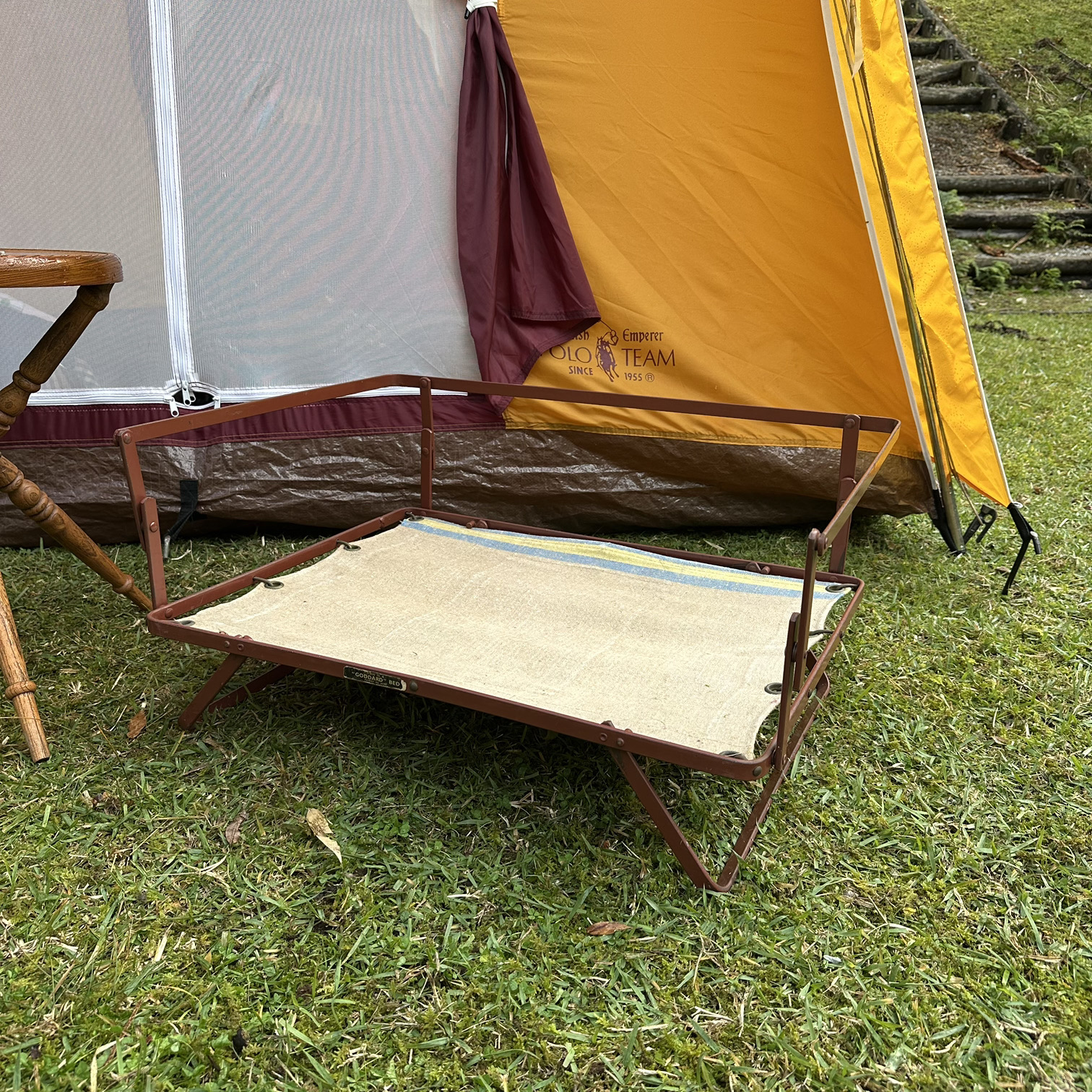 イギリスでは1950年代に持ち運びができる、犬用のベッドが存在しました。ピクニックなどが流行った時代に、コンパクトに折り畳めるこのコットは重要な役目を果たしていたようです。