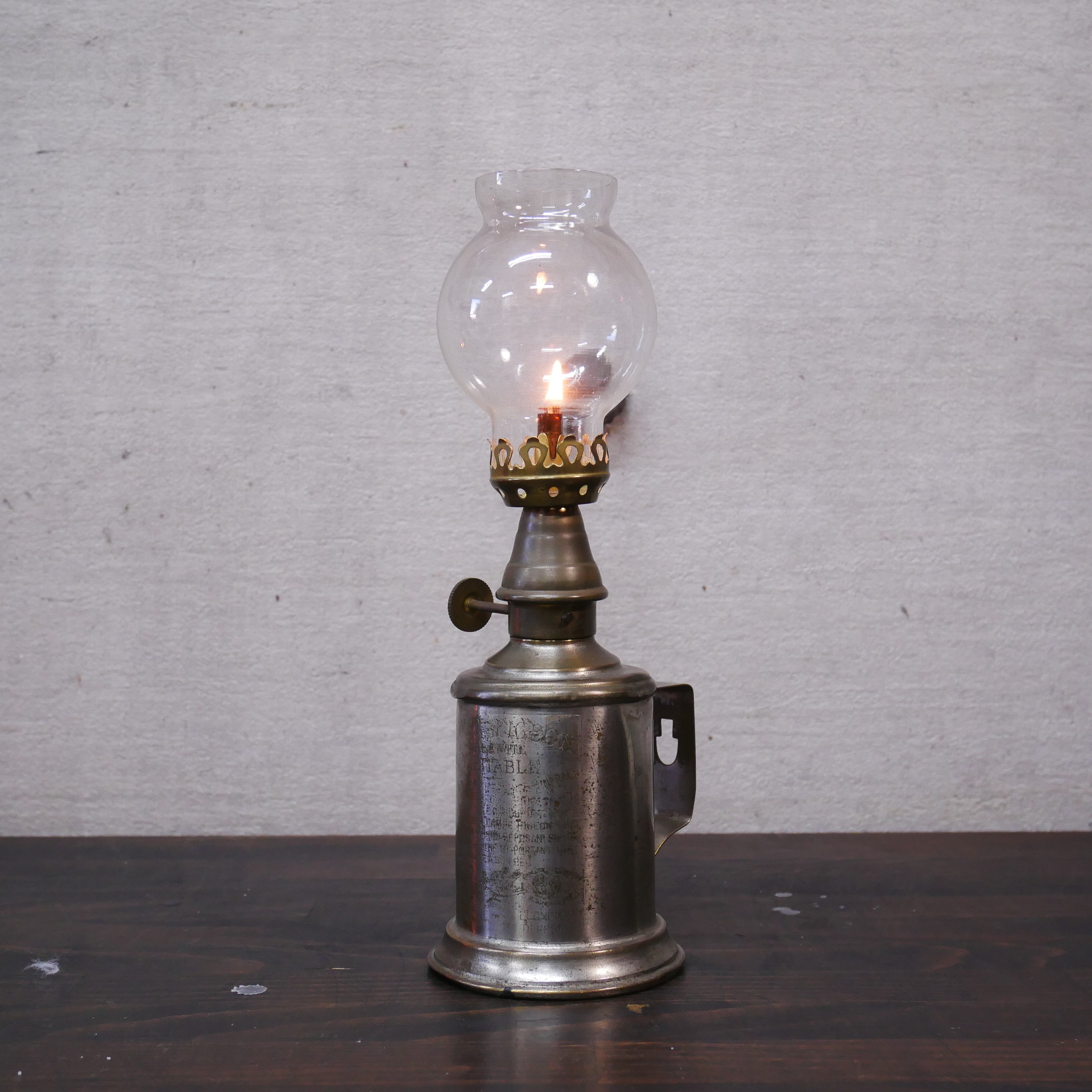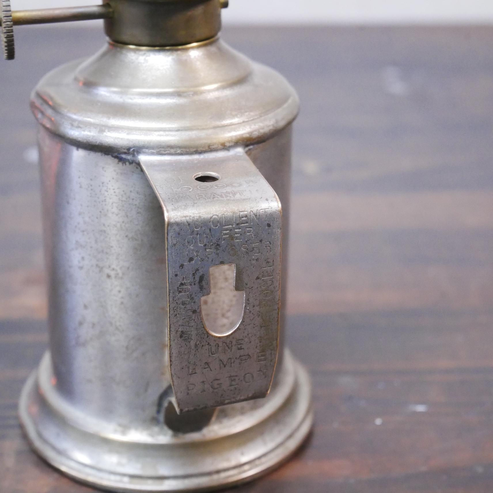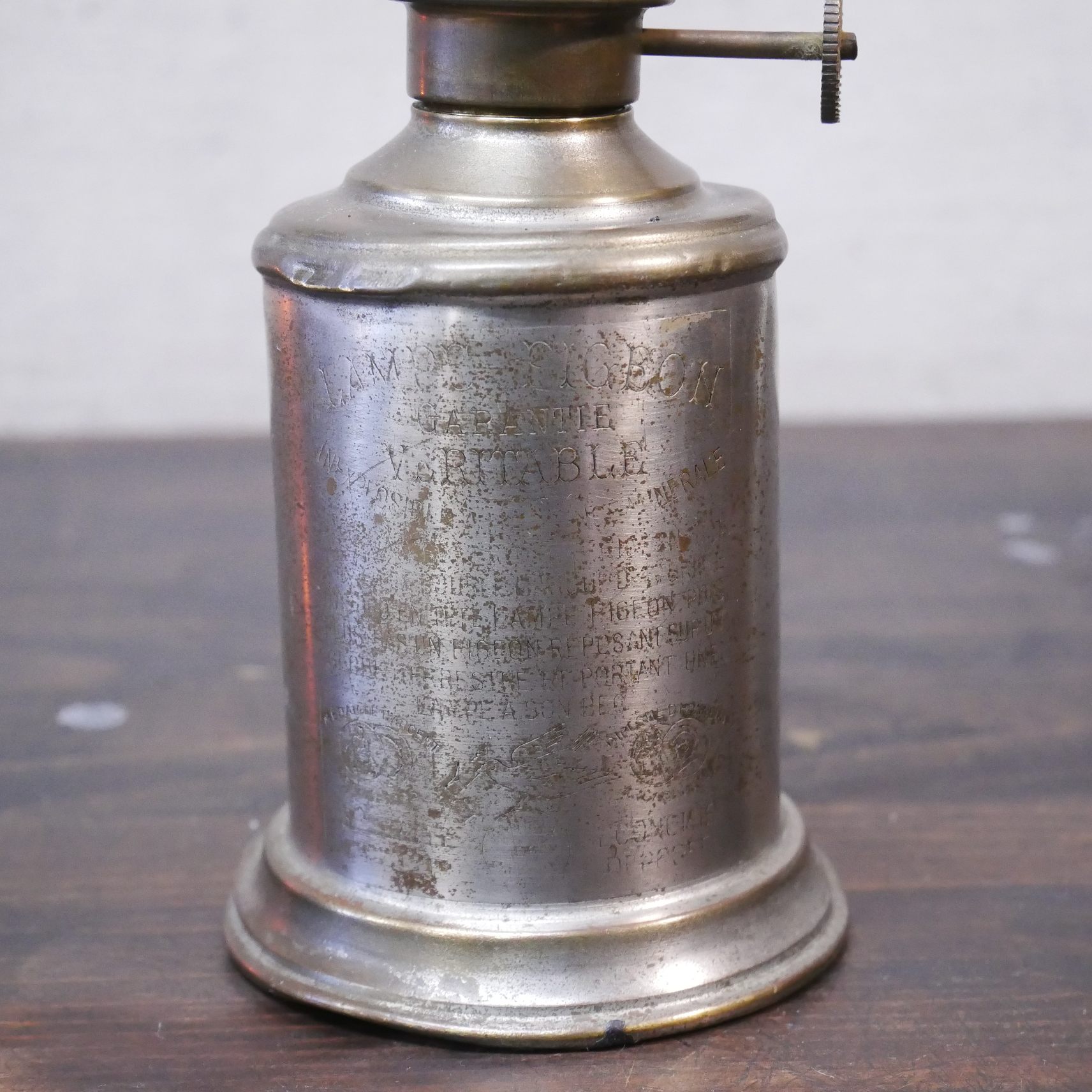 名前の由来は鳩からではなく、発明者のシャルル・ピジョンからの由来です。19世紀後半に発明され20世紀初頭まで愛されてきました。このような形状のランプの総称としてPigeon Lampと呼ばれていて、各社から販売されていました。今回のLampはその中でもPigeon社の物になります。